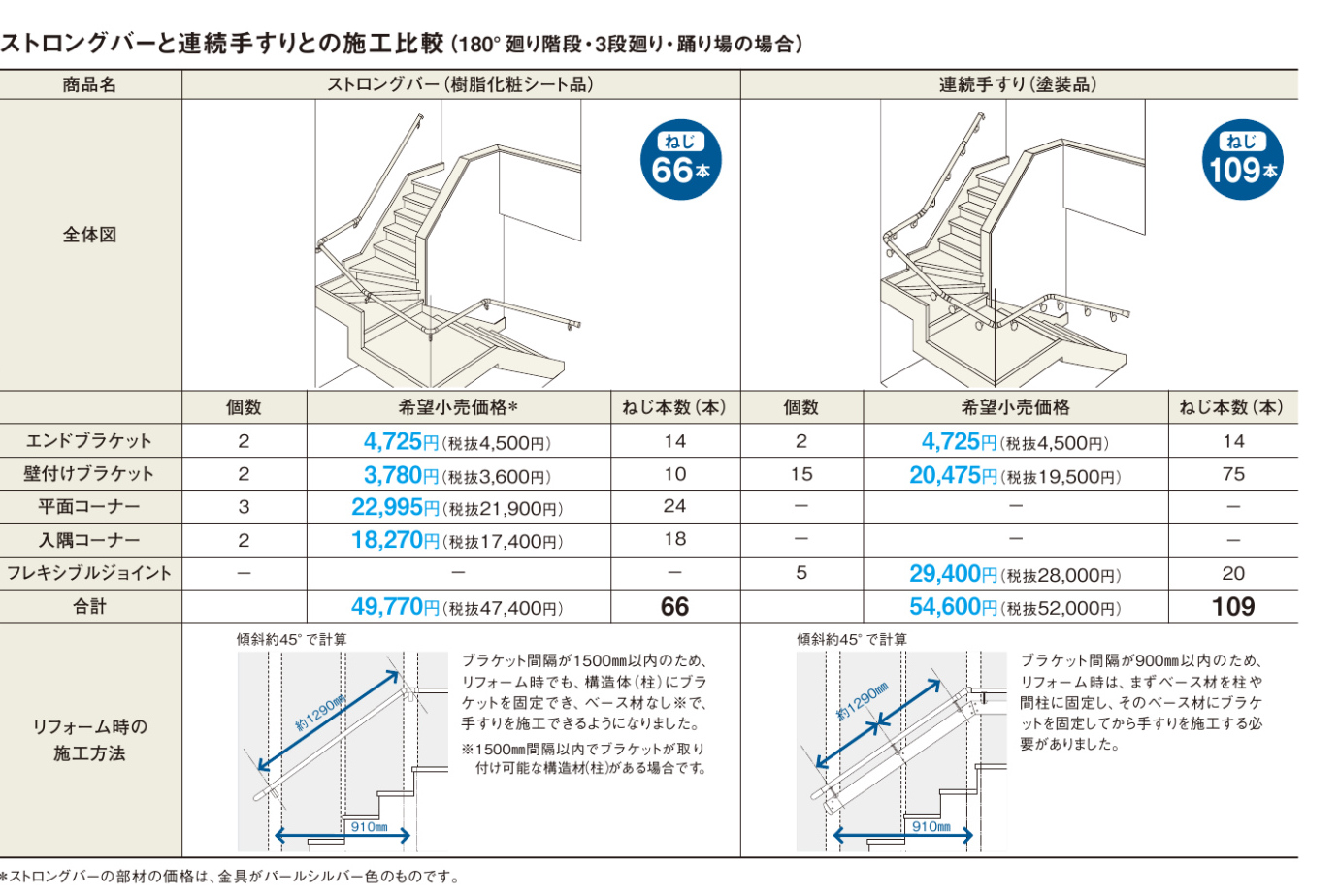 コストが抑えれるので下地の状況を踏まえて、通常の手すりと、このストロングバー手すりを使い分けました。